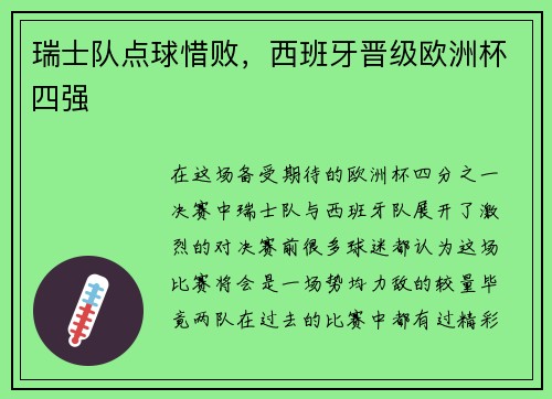 瑞士队点球惜败,西班牙晋级欧洲杯四强